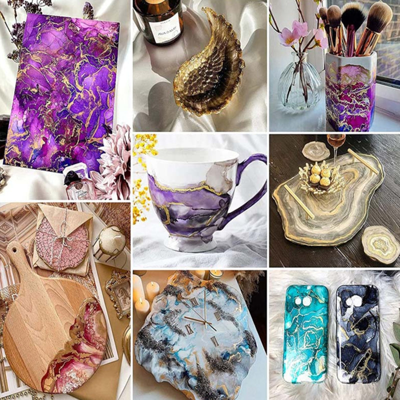 �High ConcentrationA little goes a long way! You will be surprised by the color effect with our alcohol-based ink, alcohol ink for resin will spread quickly in epoxy resin, you can easily mix it with alcohol to get better spread effect, as well as lighter colors! (Note: Adding too many inks will affect resin curing, please be pay attention to the amount)